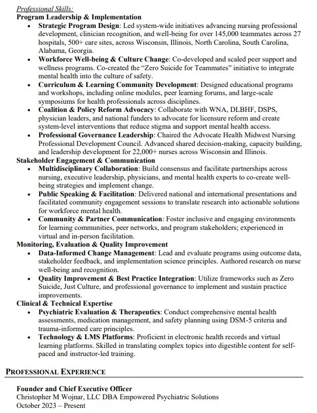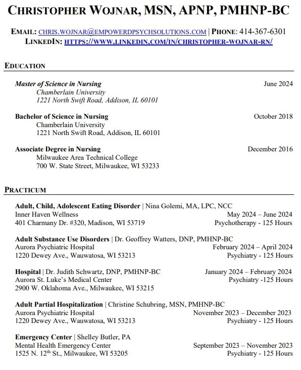 By choosing Empowered Psychiatric Solutions and Christopher Wojnar, you gain access to: